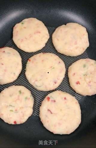 5. 制作土豆饼:用手将土豆面糊团成小饼状,放入预热好的锅中。注意,不要放太多土豆饼,以免相互粘连。